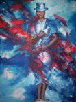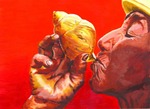 2014Beeld in rood en groen, gebruik van papier op doek.